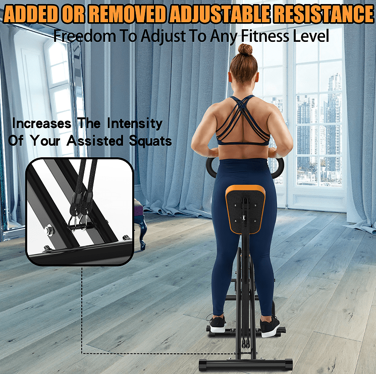 Adjustable Seats & with Resistance Bands: Increase your stability with the wide pivoting pedals and adjustable seat with an anti-slip grip. The squat machine with resistance bands can be added or removed to adjust the resistance of your workout to your fitness level.