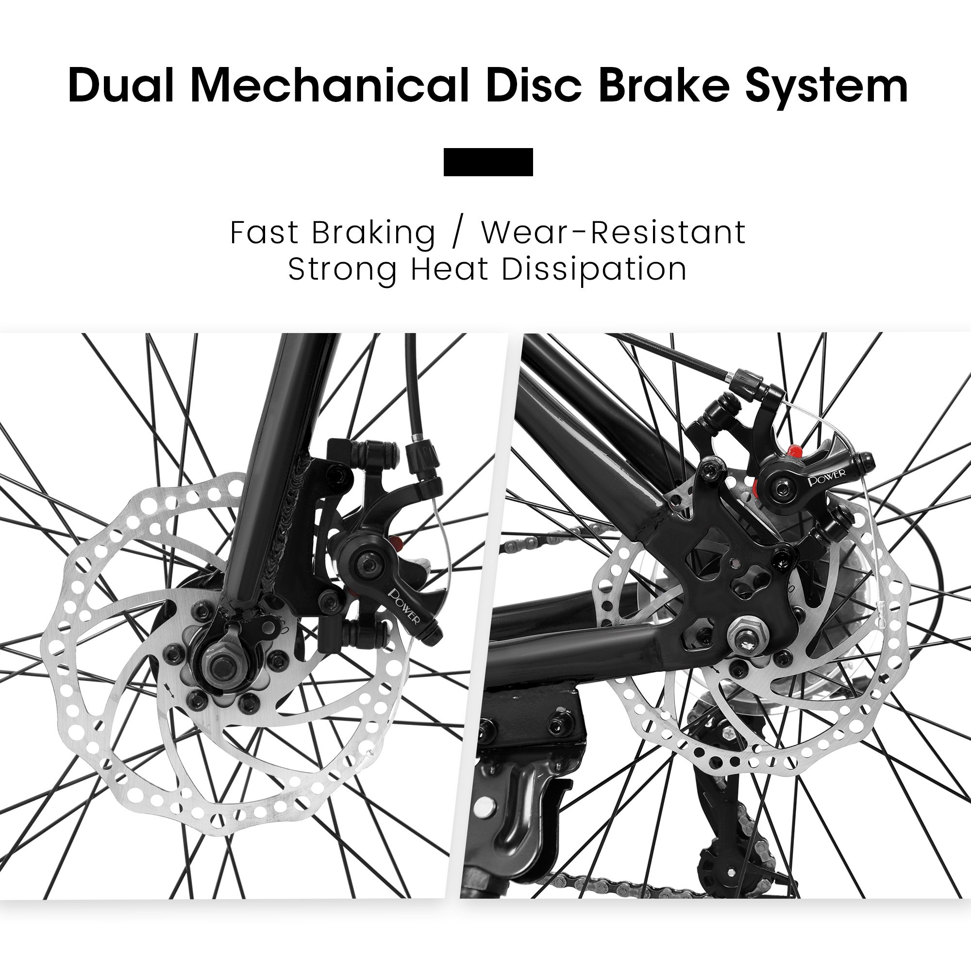 [Powerful Dual Disc Brakes] Ecarpat mountain bikes feature a mechanical disc brake system that ensures safety. Front disc brakes can greatly reduce the braking distance and ensure that you can stop immediately in case of emergency. Safety always first.