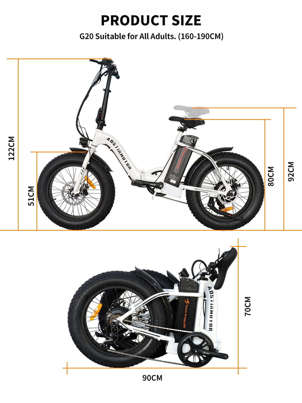 AOSTIRMOTOR EBIKE G20King of cost performance Foldable frame + removable lithium battery Super portable to help you ride anywhere The 500-watt motor is matched with 36V13AH gold to give you maximum endurance with minimum load Pure aluminum frame protection and hardcore range of 25-35KM in pure throttle mode