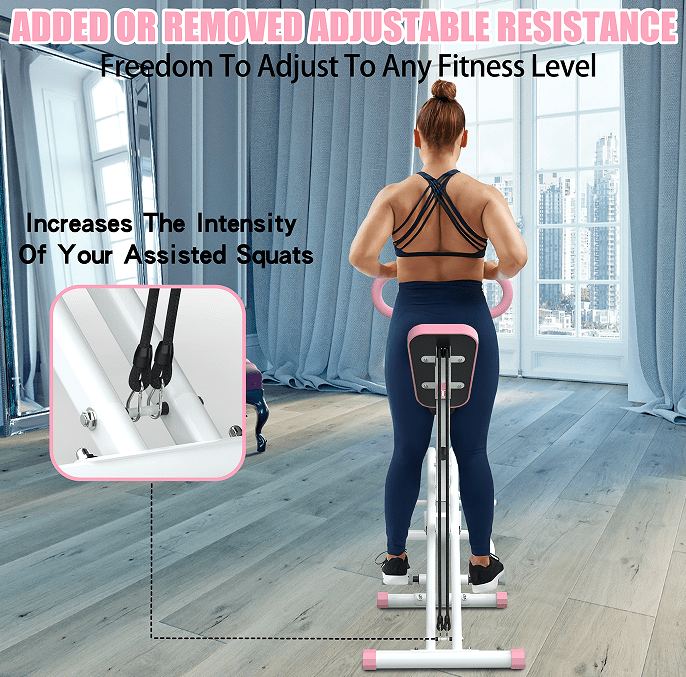 Adjustable Seats & with Resistance Bands: Increase your stability with the wide pivoting pedals and adjustable seat with an anti-slip grip. The squat machine with resistance bands can be added or removed to adjust the resistance of your workout to your fitness level.