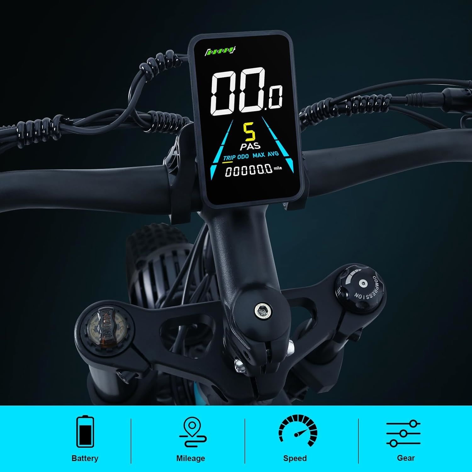 "1. Shimano 7 Speeds2. 48V 1000W Dual Motor3. 26x4.0 Fat Tire4. TX30 Trigger5. LCD Display"