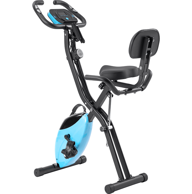 SKU: MS187237AAH Folding gym fitness upright and horizontal X-Bike 16 class adjustable resistance, arm band and backrest studio home and garage gym full body workout for adult men and women