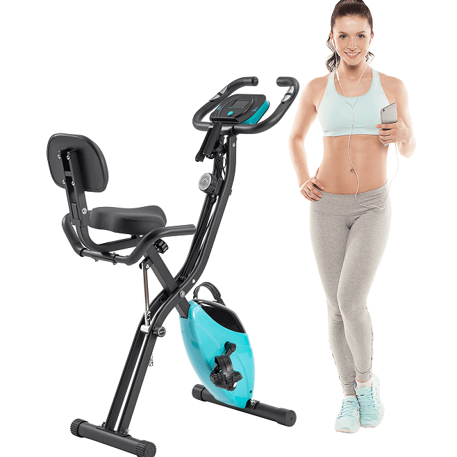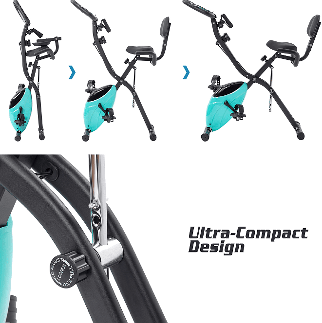 SKU: MS187237AAH Folding gym fitness upright and horizontal X-Bike 16 class adjustable resistance, arm band and backrest studio home and garage gym full body workout for adult men and women