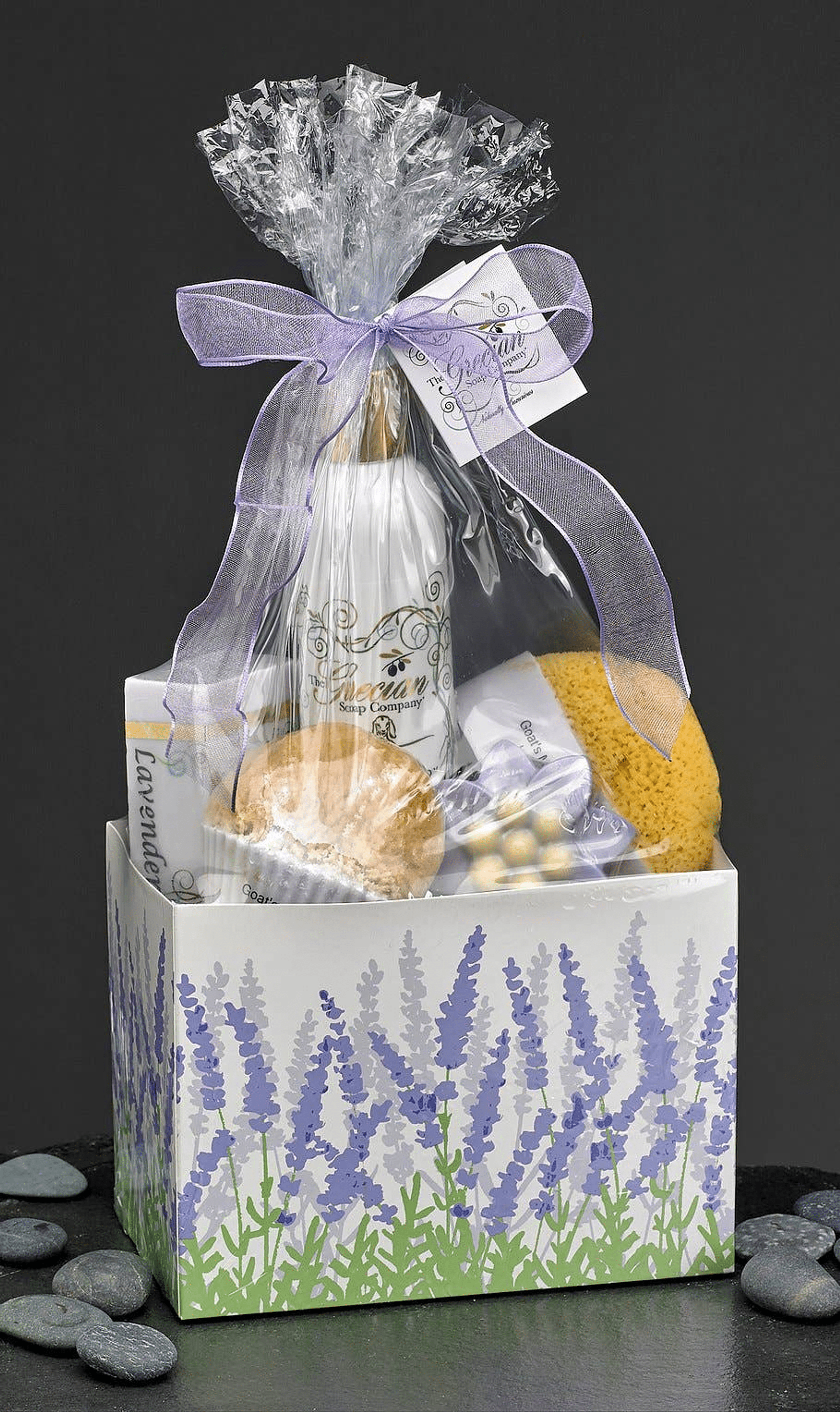 Our new lavender dream gift set includes a 8oz. Goats milk lotion, a soap with an embedded sponge, a bar soap, a flower soap and a cupcake soap - all in lavender! What better way to feel calm with the great scent of pure lavender.