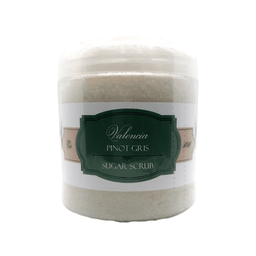 Experience the invigorating power of Valencia Pinot Gris Sugar Scrub. Infused with organic wine, minerals, and vitamins, this luxurious scrub helps combat signs of aging and deeply hydrates. A special blend of orange, lime and tangerine notes of fresh thyme brings added refreshment.
