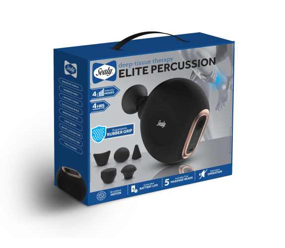 Sealy Compact Power Elite Percussive Massage GunFeatures:PERCUSSIVE MASSAGE TECHNIQUE - Percussive (also called percussion) massage uses rapid and repetitive pressure combined with vibration therapy. The massage head moves quickly and forcefully, applying pressure directly to your soft tissue, while the vibrations engage the outer layer of skin.VERSATILE - Use in multiple positions on various muscle groups such as the abs, neck, waist, arms, feet, legs, and more. This is the perfect tool for athletes or the sedentary for quick and easy relief.ERGONOMIC - The Compact Power Elite sports an ergonomic rubber handle to facilitate a surer grip as well as a matte rubber finish. Practicality mixed with style!5 MASSAGE HEADS & 4 INTENSITY MODES - Target different muscle groups with the 5 massage heads used in conjunction with the 4 intensity modes.BRUSHLESS MOTOR - This massage gun's brushless motor makes good use of the latest noise-reduction technology making this massager so quiet you won't even know it's on!PERFECT RELAXATION - This percussive massage gun can help relax tight muscles, break up scar tissue and adhesions, and minimize muscle soreness and tension, and the lightweight portable design allows you to bring it everywhere you go!WHEN TO USE - Use your percussion massage gun whenever necessary including pre-workout, during activity, post-workout, and any time you need that extra bit of help to relax tight muscles.THE PERFECT GIFT - Spread the relief. This massager is the perfect gift for friends, family, colleagues, and more!Overview & Specifications:Percussive massage gunErgonomic rubber handle & rubberize finish4 Intensity modes5 Massage headsMatte rubber finishLightweight200 minute charging time4 hour working timeExtended battery lifeType-C chargeBrushless motor for noiseless operationReduces muscle tension, fatigue, stiffness and pain