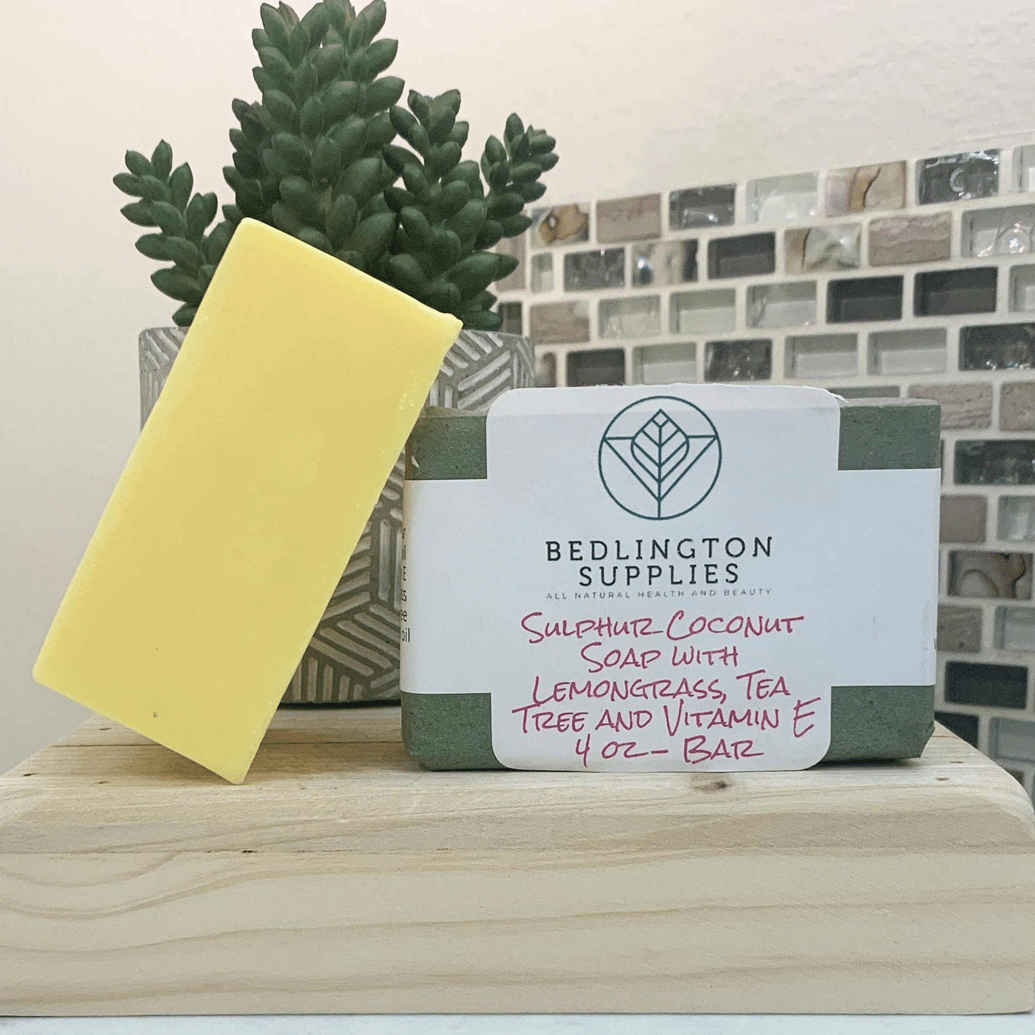 Sulphur coconut soap with lemongrass and tea tree essential oils with Vitamin E oil.