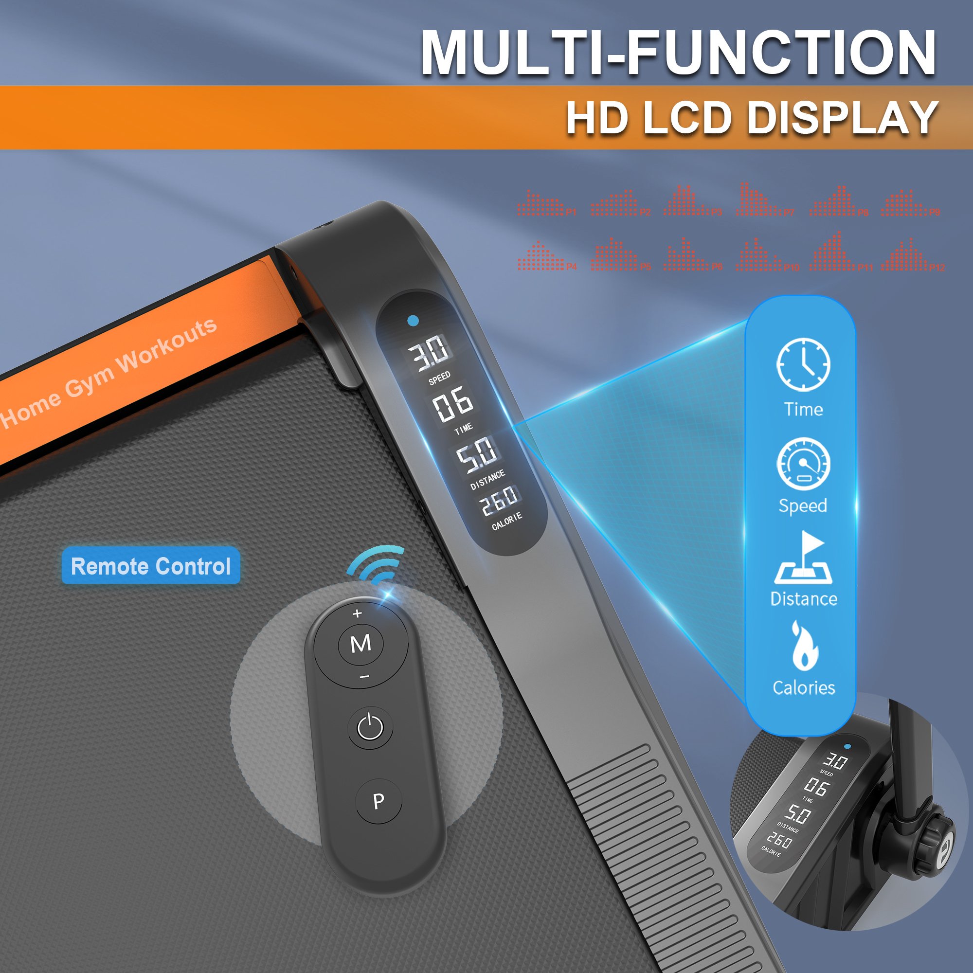 MULTI-FUNCTION LED DISPLAYMulti-functional LED display of walking pad treadmill allows user to track progress in speed, distance, time and calories burned.